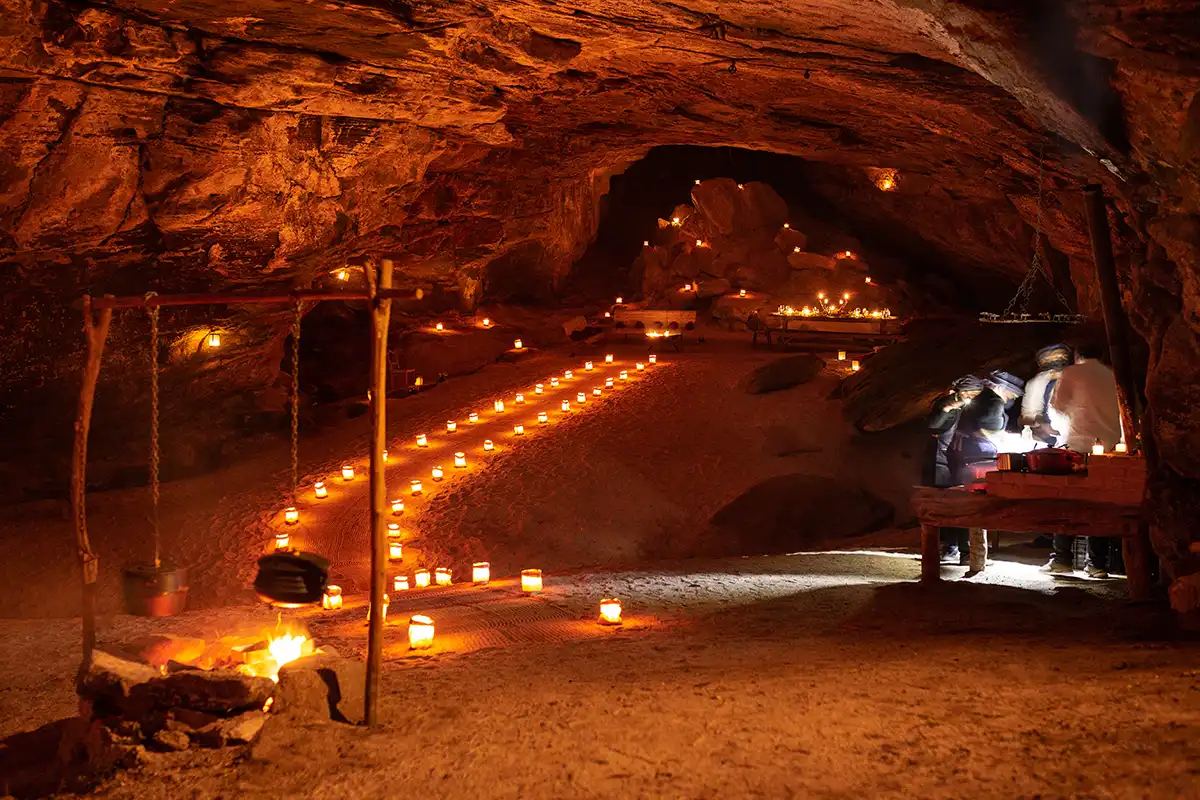 É possível agendar o Jantar na Gruta, uma experiência exclusiva em um ambiente único e encantador. O menu servido é empratado, composto por 03 tempos, elaborado com a consultoria do renomado Chef Claude Troisgros, trazendo sofisticação e sabores surpreendentes.