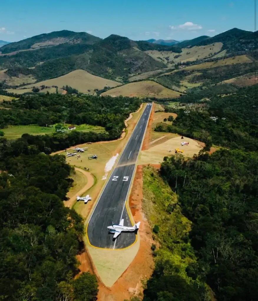 The dream of the runway was born with Carlinhos Repetto, founder of Ibiti Projeto, inspired by mountain airports like Courchevel. In challenging terrain, in the first decade of the 2000s he made it possible to build it in a clearing in the middle of the forest, without having to cut down a single tree. The airfield was named after his mother, Carolina de Assis Repetto (1920-2025).